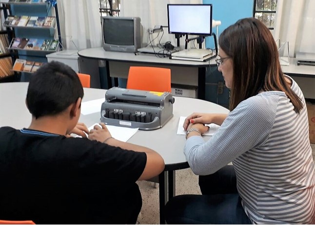 A Sala de Recursos para deficientes visuais da Escola Estadual Prof.ª Inah de Mello contém lupas eletrônicas, máquina e impressora em braile. Os alunos ganham um notebook com sintetizador de voz para ser utilizado durante todo o período do ensino médio.
